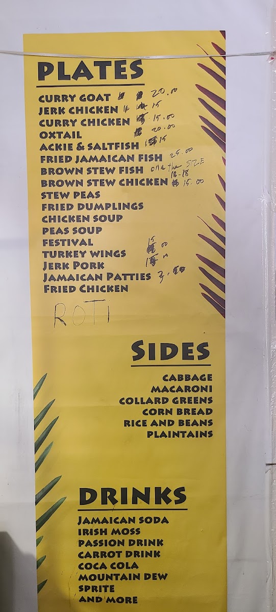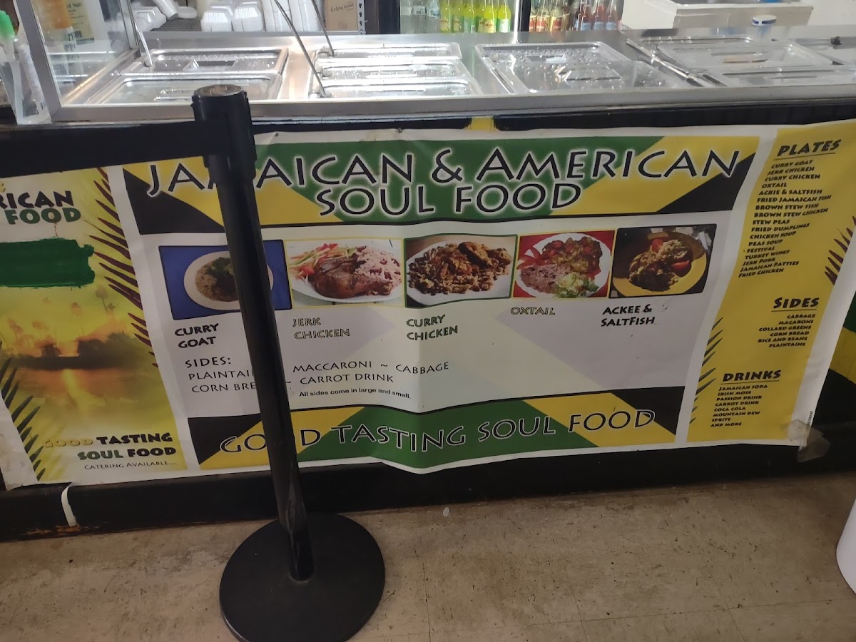 Curry goat served with two sides. Choose from cabbage, candied yams, collard greens, mac & cheese, plantains, or rice & beans.